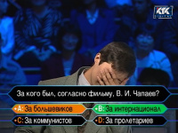 Владимир на лицо артистов не знает, поэтому без подсказок тут не обойтись — сначала идёт 50:50: остаются варианты B и C.