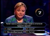 Участница использует оставшуюся подсказку — 50:50 — остаются варианты A и B.