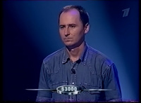 После пяти пар вопросов счёт равный — 3 правильных ответа. Владимиру и Сергею задаются дополнительные вопросы.